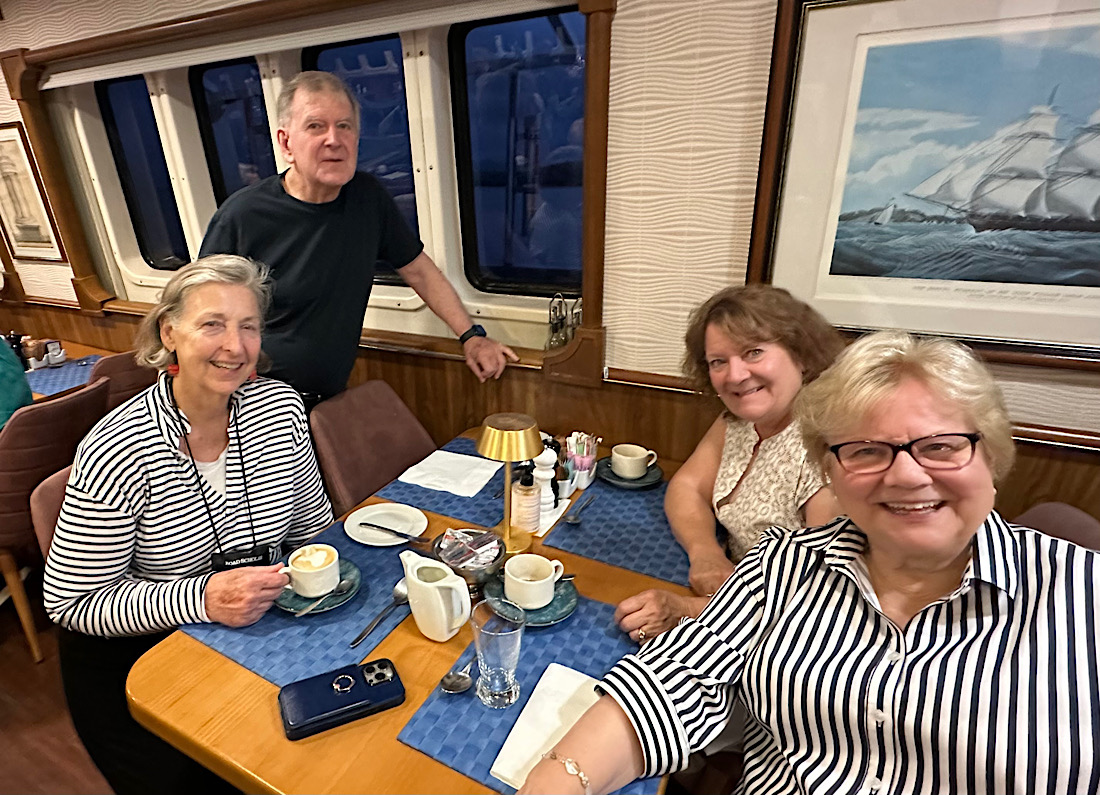 IMG_8309 Published November 1, 2025 at 1100 × 795 in October 18, 2025: The Greek god, Apollo, and Windmills! ← Previous / Next → Our group (minus Michael) enjoying morning coffee before departing.