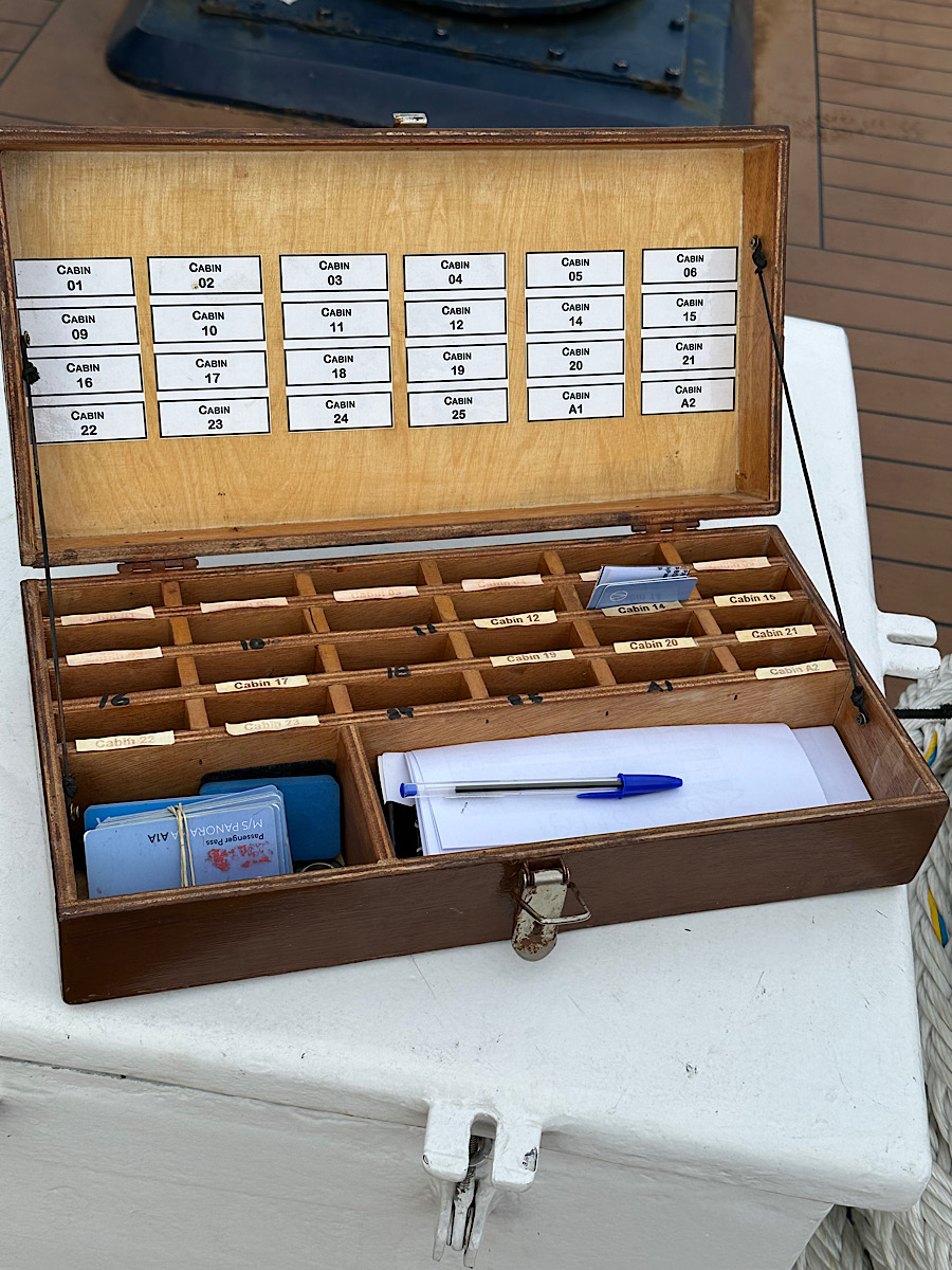IMG_8386 Published November 1, 2025 at 900 × 1200 in October 18, 2025: The Greek god, Apollo, and Windmills! ← Previous / Next → We are given a room card each time we leave the ship and return the card when we return to the ship. That way they know if everyone is on board.