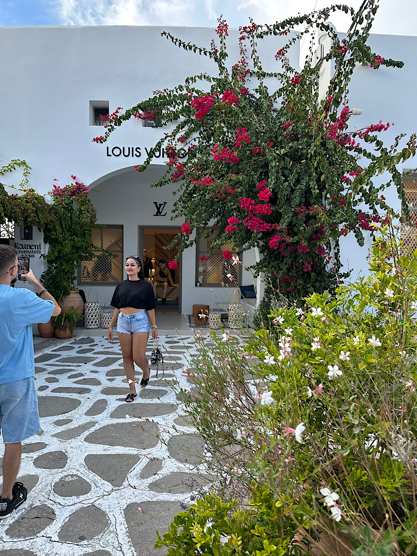 IMG_8405 Published November 1, 2025 at 825 × 1100 in October 18, 2025: The Greek god, Apollo, and Windmills! ← Previous / Next → Many people took time to take a picture in front of the high end Louis Vuitton store.