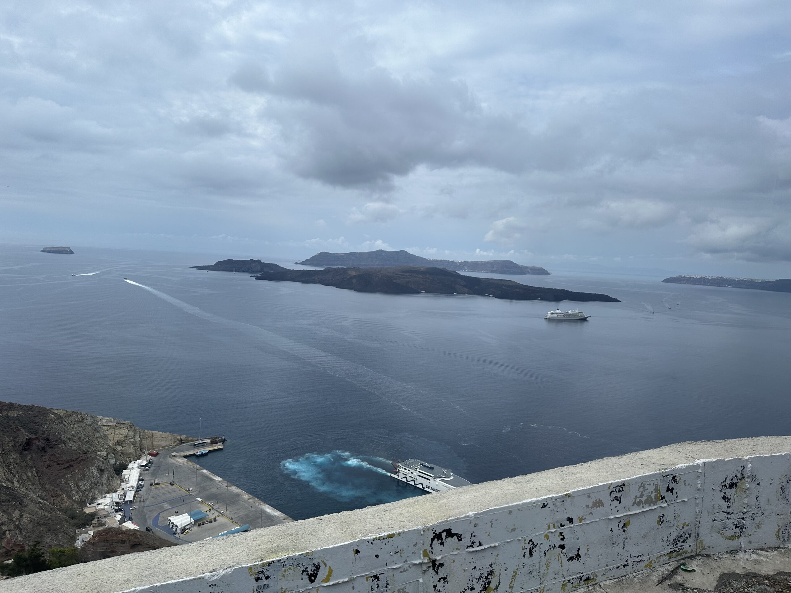 IMG_8140 Published November 3, 2025 at 2560 × 1920 in October 19, 2025: A Visit to an Ancient City on Thera. ← Previous / Next → Looking back at a small island in the caldera where the ground is still fairly hot. I recall taking a tour there that last time we were here.