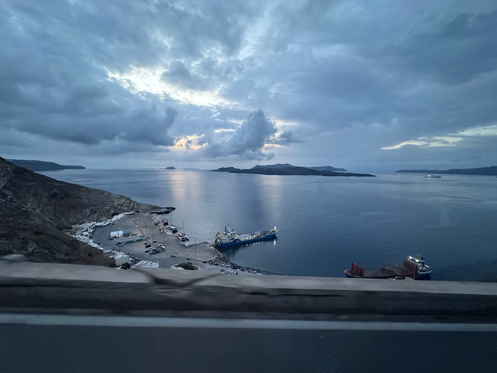 IMG_8448 Published November 4, 2025 at 1600 × 1200 in October 19, 2025: A Visit to an Ancient City on Thera. ← Previous / Next → 6:30 pm and it is getting dark as we return to the port and our tender ride back to the ship.
