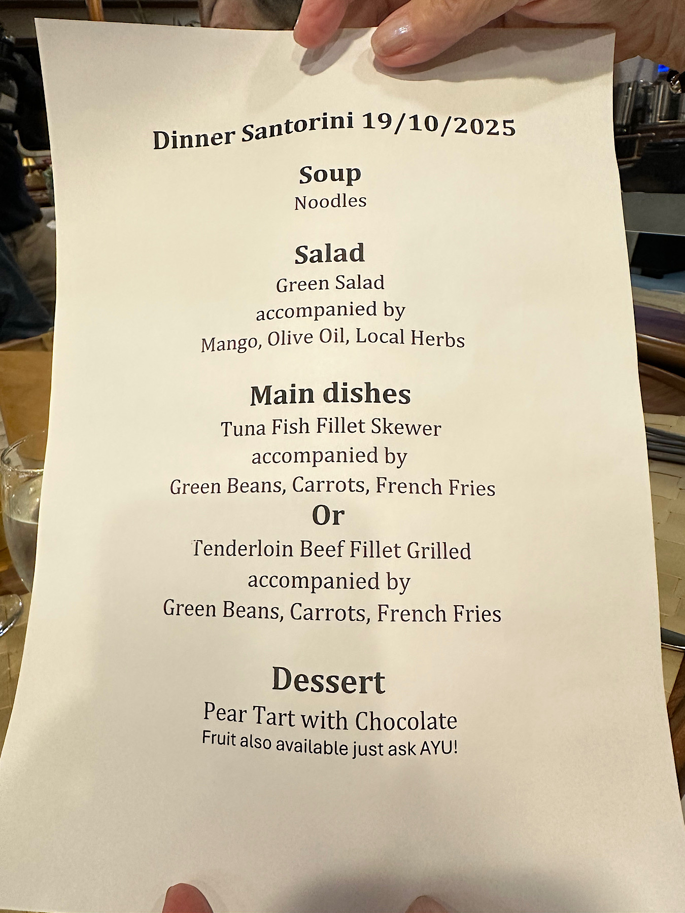 IMG_8449 Published November 4, 2025 at 1350 × 1800 in October 19, 2025: A Visit to an Ancient City on Thera. ← Previous / Next → Tonight’s dinner menu.