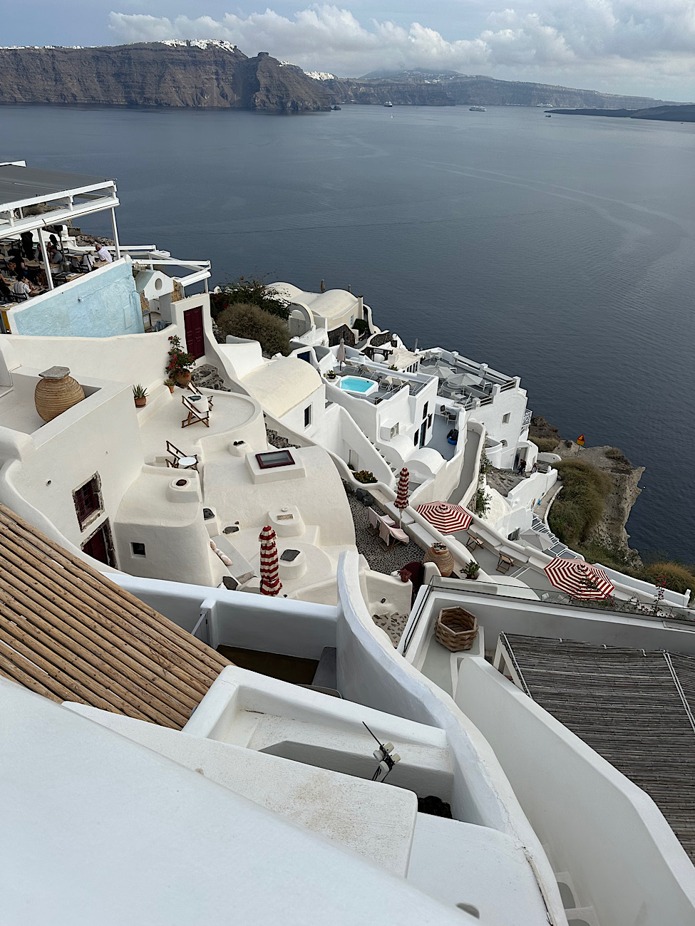 IMG_8459 Published November 4, 2025 at 975 × 1300 in October 19, 2025: A Visit to an Ancient City on Thera. ← Previous / Next → Boutique hotels and homes dot the cliffside.