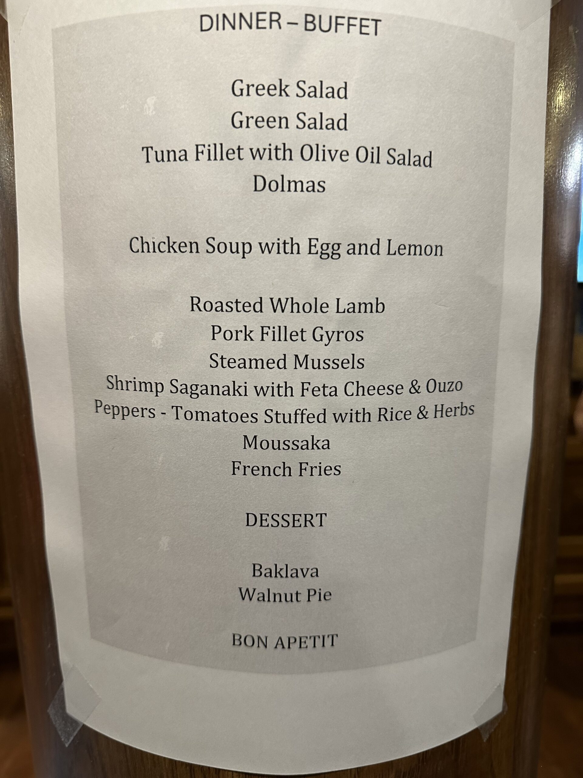 IMG_8463 Published November 11, 2025 at 1920 × 2560 in October 20, 2025: The Minoan Civilization on Crete. ← Previous / Next → Our dinner buffet menu.