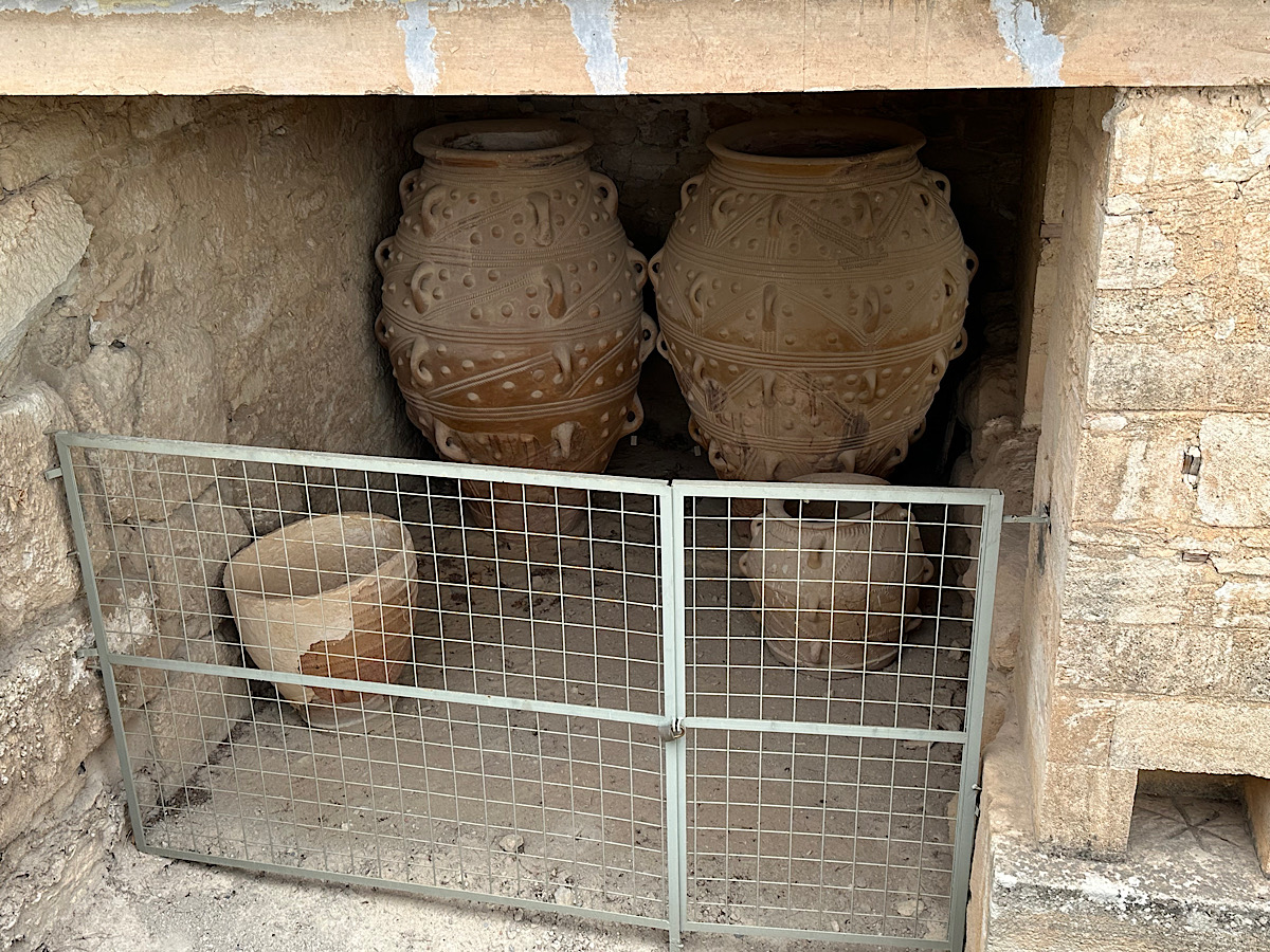 IMG_8517 Published November 6, 2025 at 1200 × 900 in October 20, 2025: The Minoan Civilization on Crete. ← Previous / Next → Examples of the very large containers (called lithos) that were used to store olive oil, grain and wine. It was used locally and traded with other civilizations.