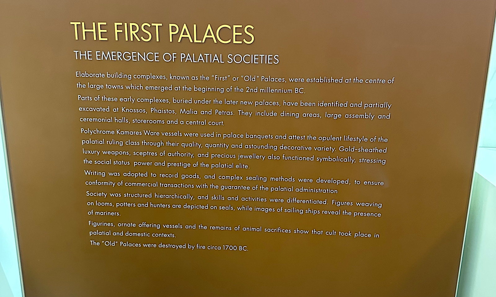 IMG_8546 Published November 12, 2025 at 1600 × 959 in October 20, 2025: The Minoan Civilization on Crete. ← Previous / Next → The emrgence of palaces in the 2nd millennia BCE.