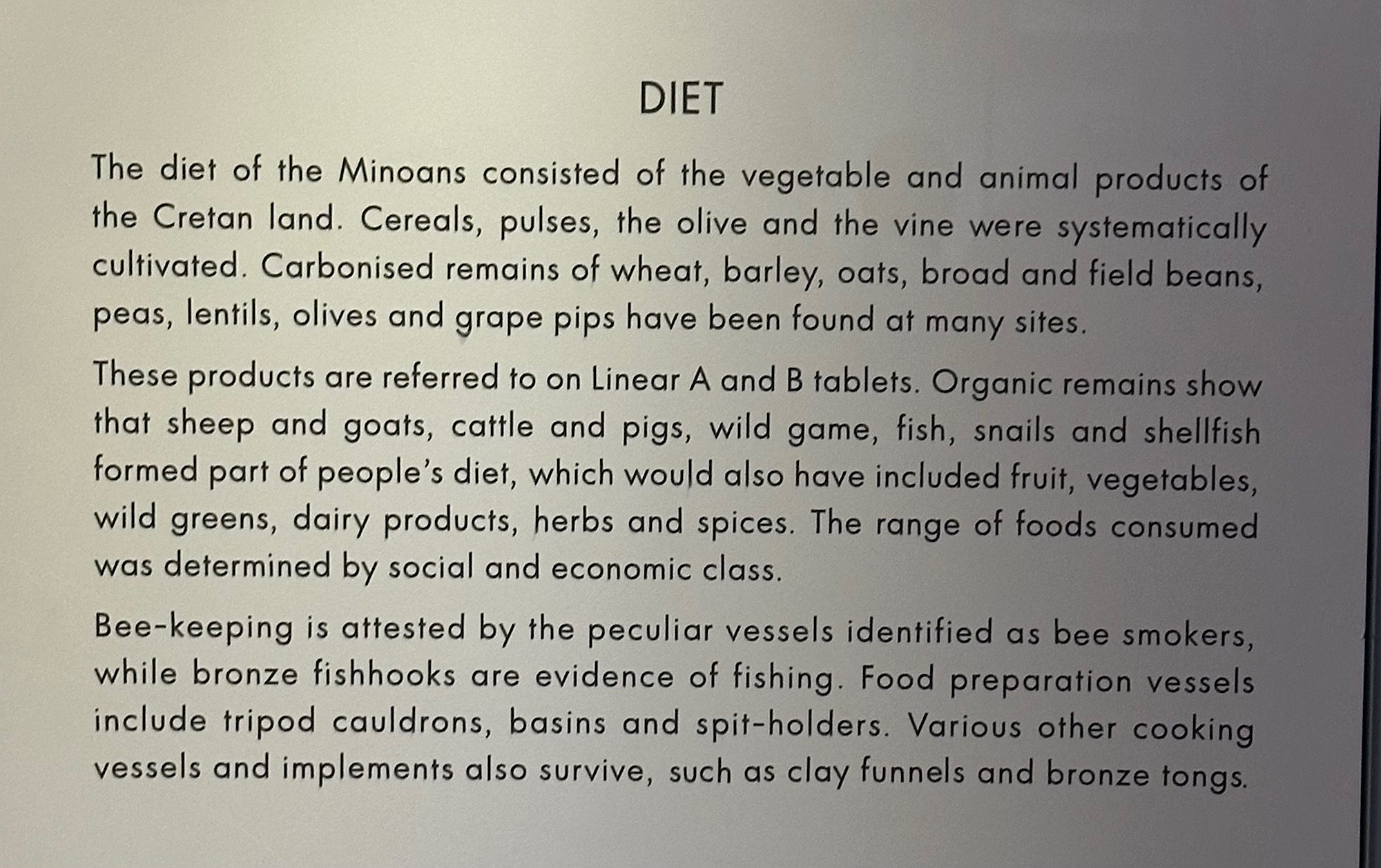 IMG_8561 Published November 12, 2025 at 2000 × 1259 in October 20, 2025: The Minoan Civilization on Crete. ← Previous / Next → Speculation of what the Minoan diet was like.