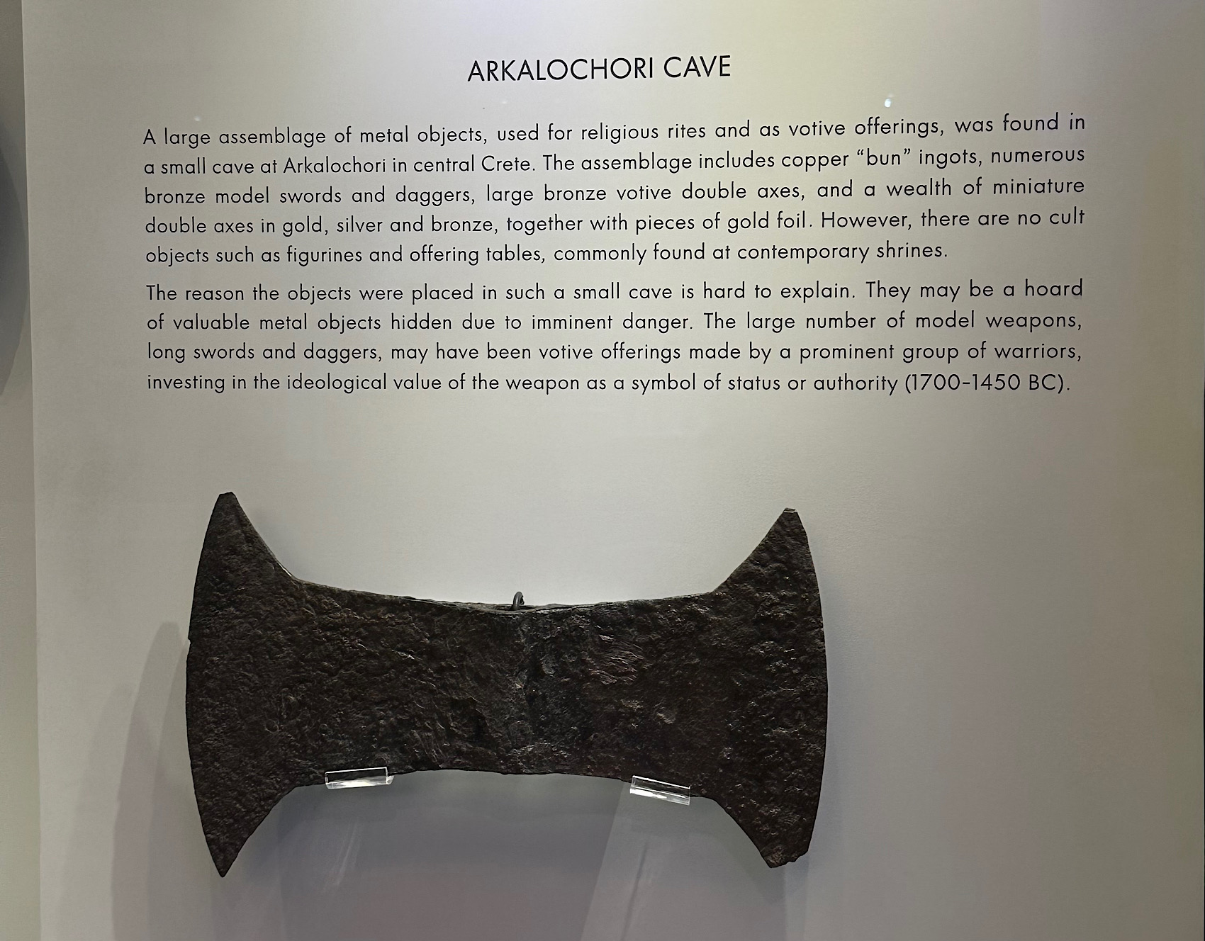 IMG_8566 Published November 12, 2025 at 1700 × 1328 in October 20, 2025: The Minoan Civilization on Crete. ← Previous / Next → The metal ax was a symbol of the Minoan culture.