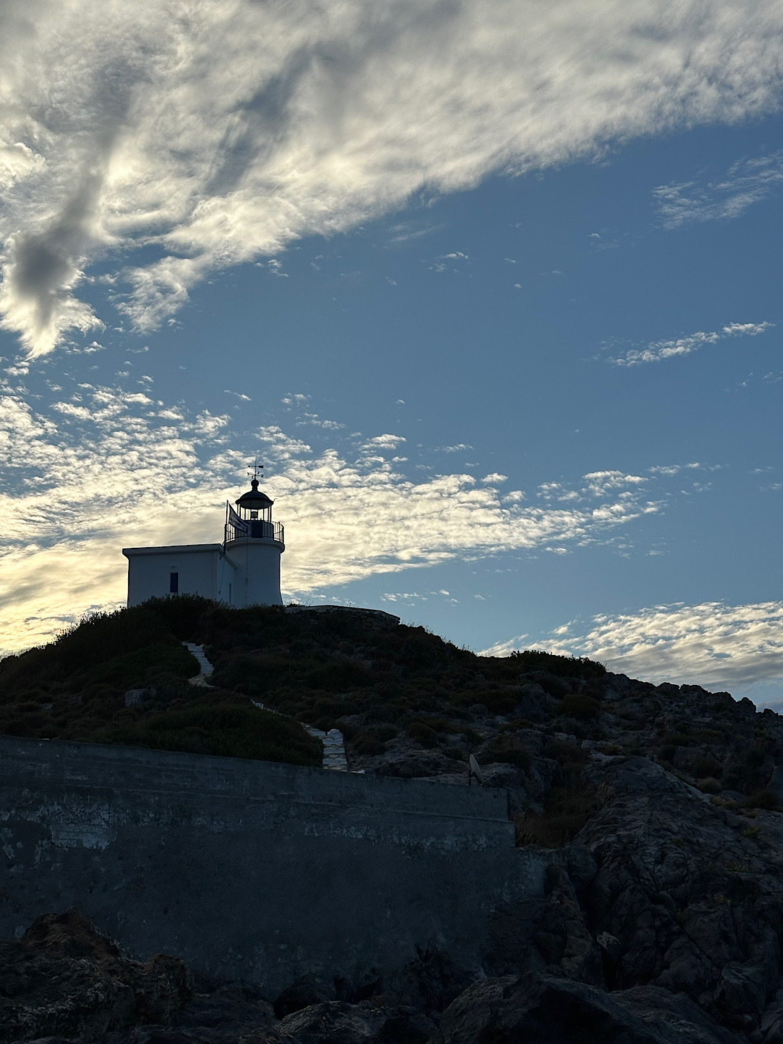 IMG_8596 Published November 12, 2025 at 1125 × 1500 in October 21, 2025: Onward to Kythira and Monemvasia ← Previous / Next → Lighthouse and and early morning sky.