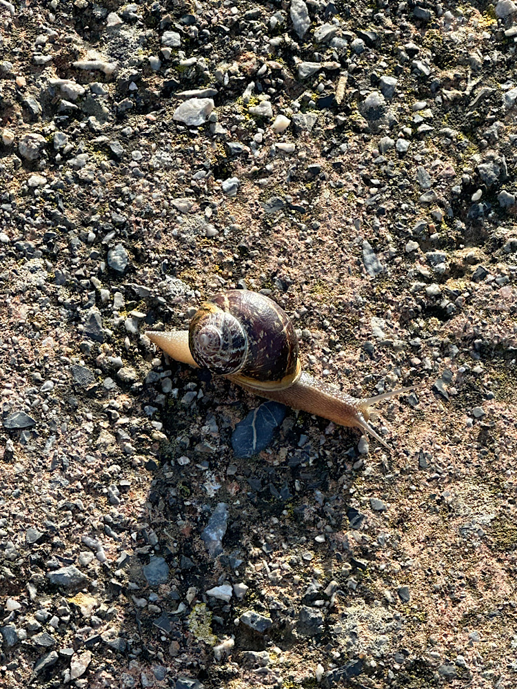 IMG_8619 Published November 12, 2025 at 750 × 1000 in October 21, 2025: Onward to Kythira and Monemvasia ← Previous / Next → A local snail crossing our path. We let him pass unhindered.