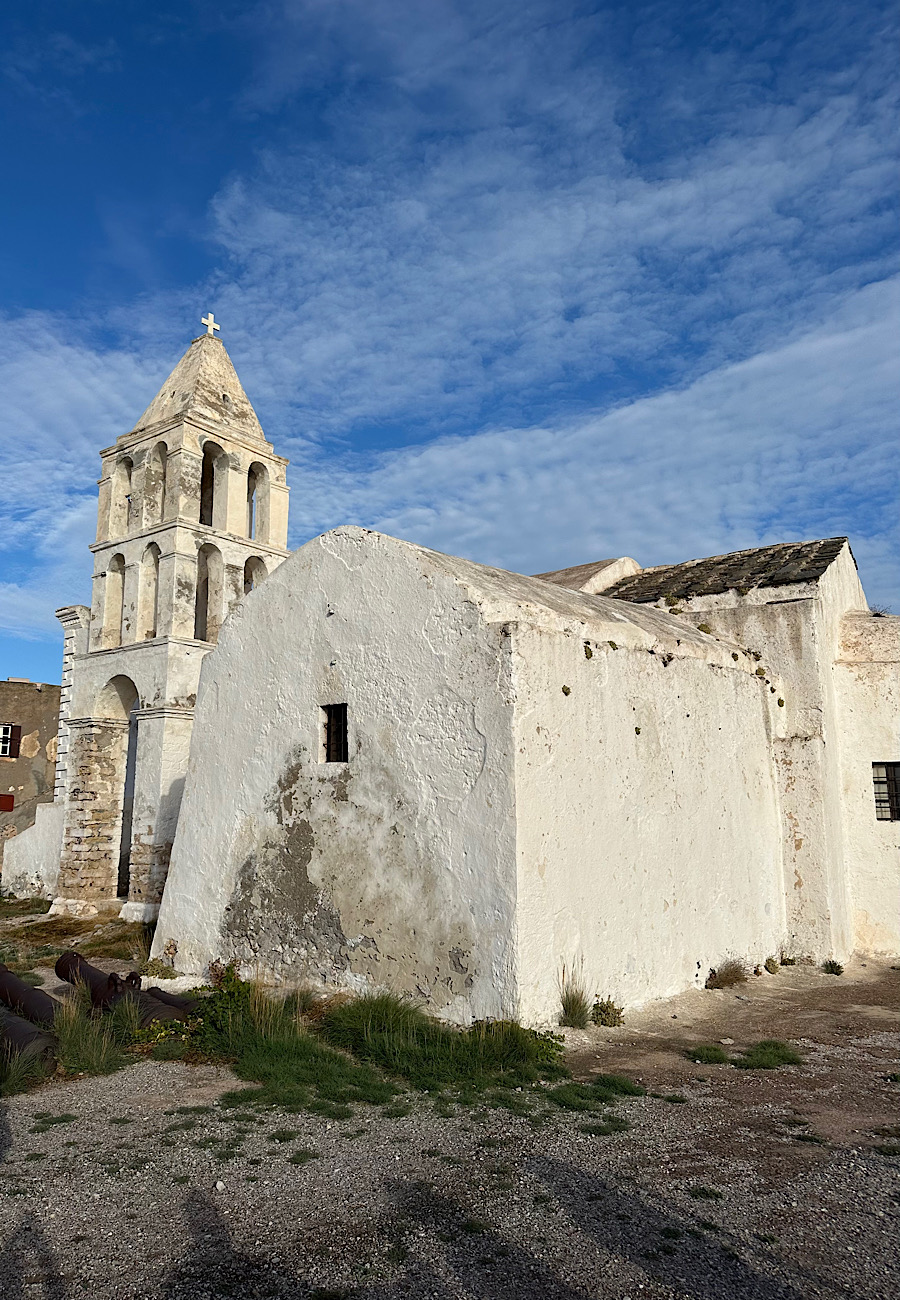 IMG_8624 Published November 12, 2025 at 900 × 1300 in October 21, 2025: Onward to Kythira and Monemvasia ← Previous / Next → An old church in the fortress. Surprisingly it is still in use.
