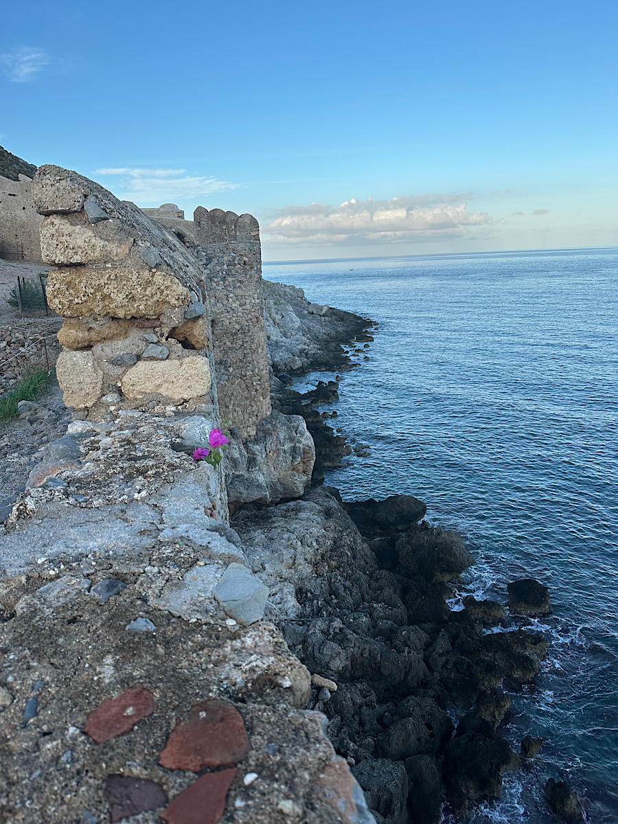 IMG_8684 Published November 13, 2025 at 900 × 1200 in October 21, 2025: Onward to Kythira and Monemvasia ← Previous / Next → Note a small blooming red flower growing in the rock wall.