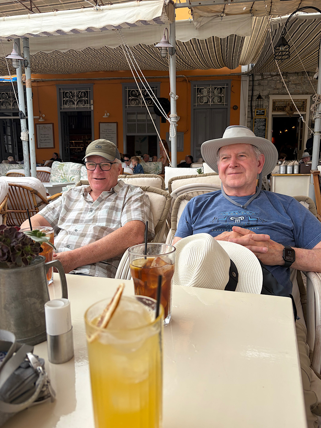 IMG_8867 Published November 16, 2025 at 1050 × 1400 in October 23, 2025: Visiting What Turned Out to Be My Favorite Destination! ← Previous / Next → Some people shopped. Some people (Michael and John) chose to sit and watch the world go by.