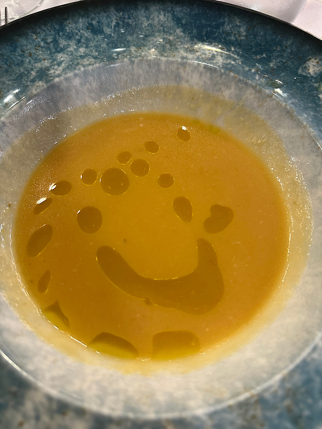 IMG_8894 Published November 16, 2025 at 1125 × 1500 in October 23, 2025: Visiting What Turned Out to Be My Favorite Destination! ← Previous / Next → Sort of looks like a smiley face.they always added a bit of olive oil to their soups.