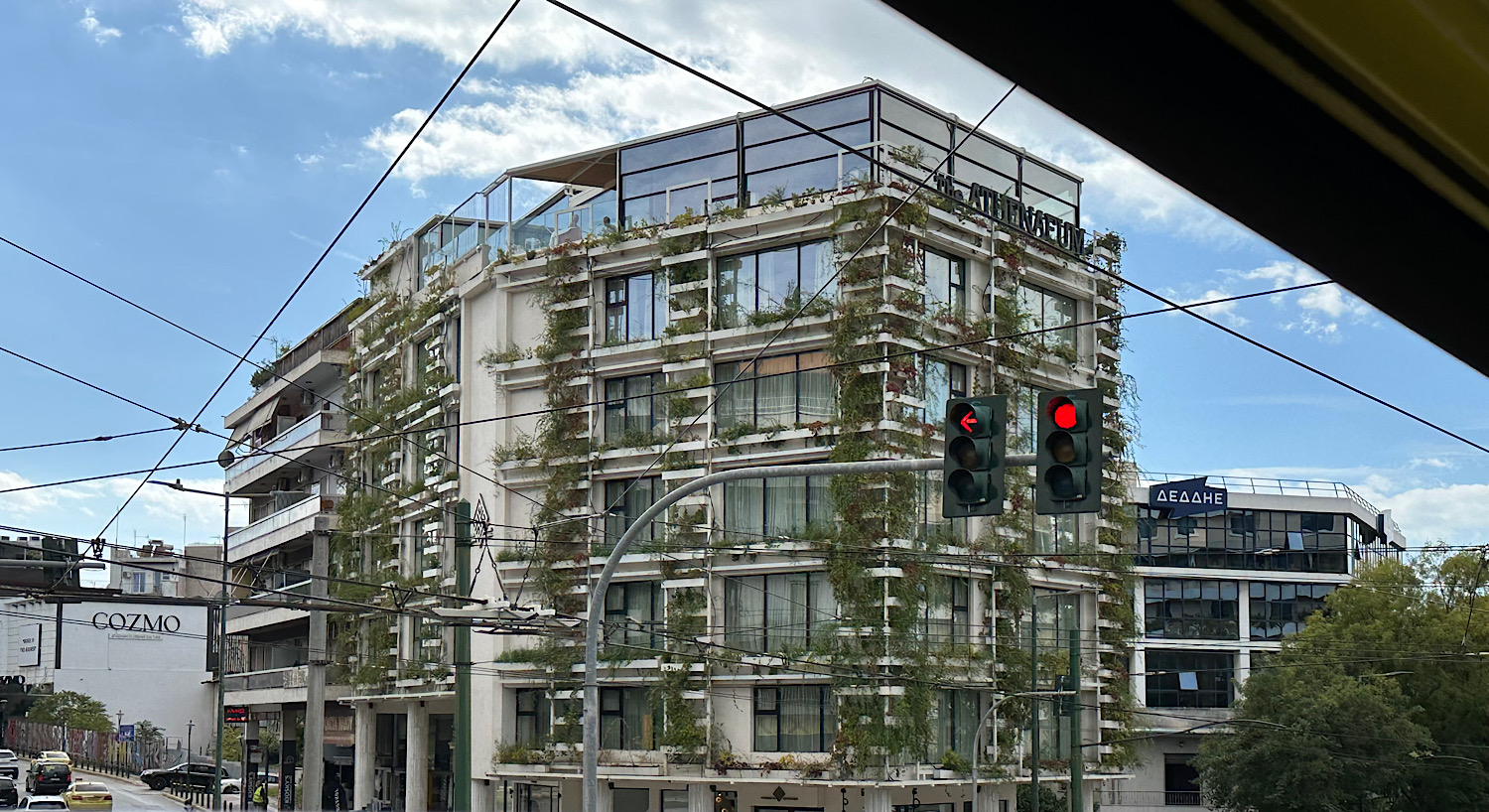 IMG_8913 Published November 17, 2025 at 1500 × 818 in October 24, 2025: Back to Solid Ground and More Athens Sightseeing. ← Previous / Next → Interesting building with a live wall decor.